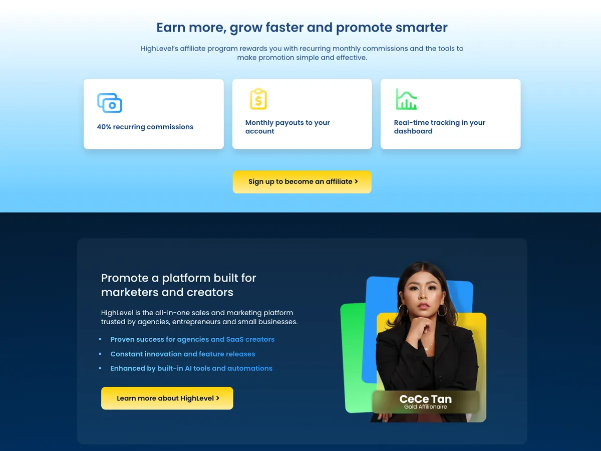 The platform serves agencies, coaches, and entrepreneurs who often invest significantly in business tools. Higher-value customers mean bigger commission checks.