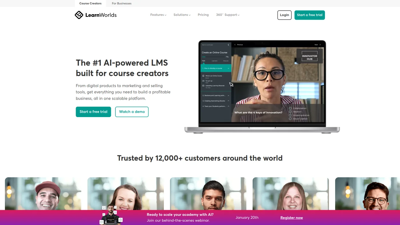 Systeme.io starts at $27/month and includes courses, funnels, and email marketing. Thinkific also offers a free plan with basic features.
