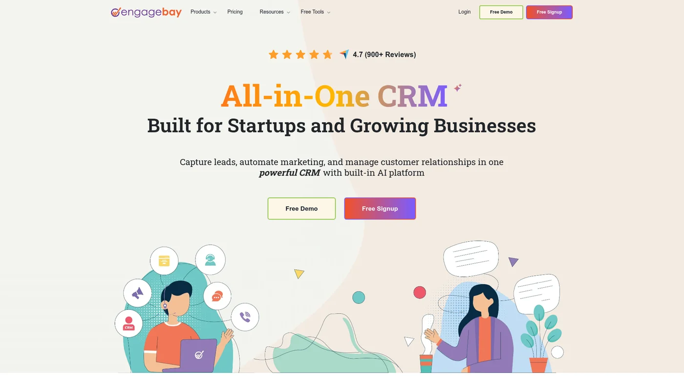 All-in-one CRM platform for startups and small businesses combining marketing automation, sales, and customer support tools.