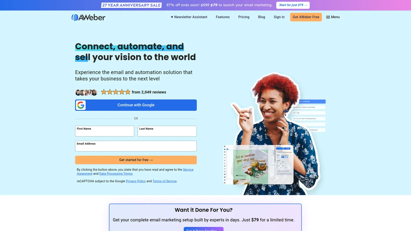 Email marketing and automation platform with webinar and landing page tools