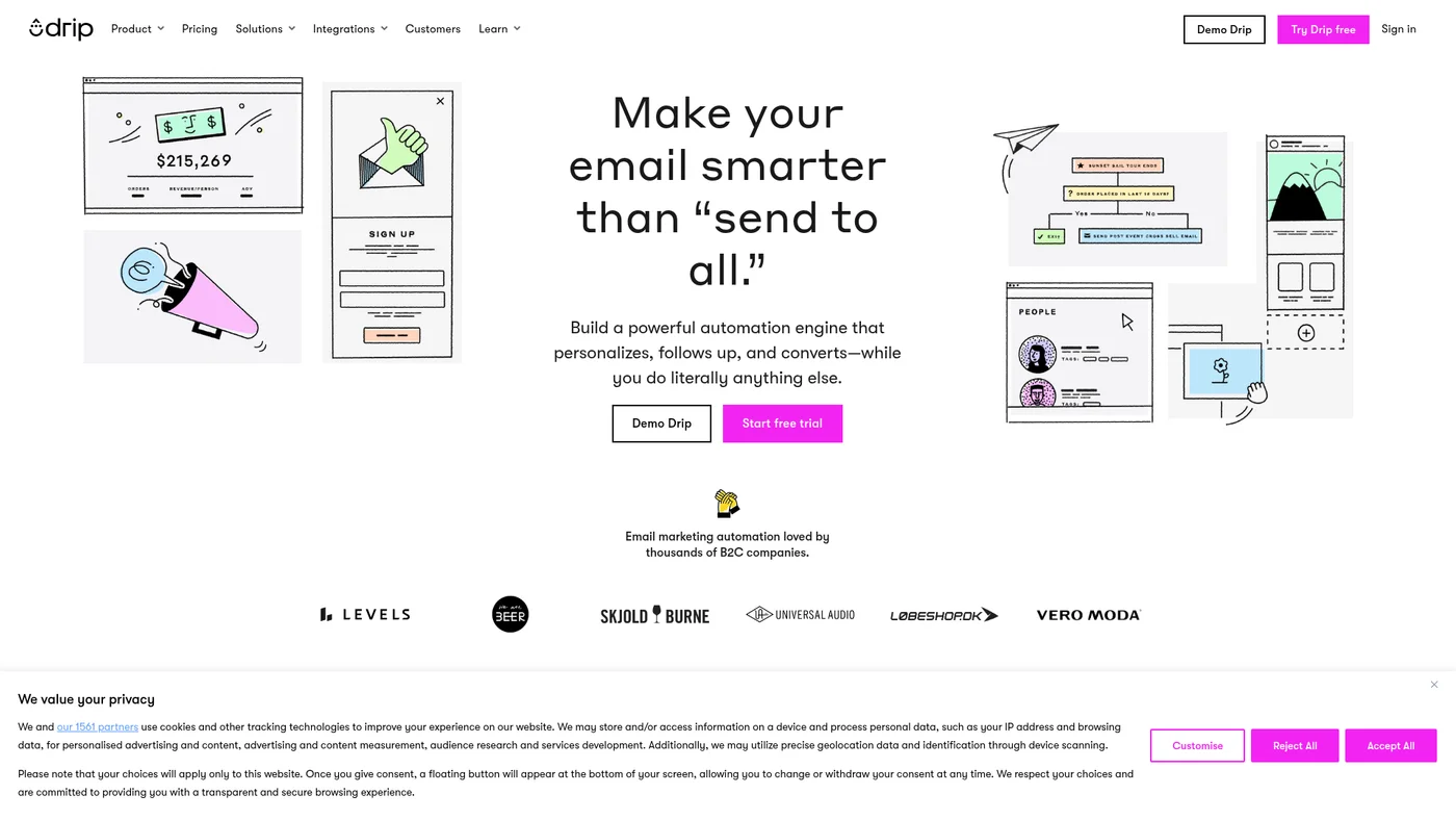 Drip is a marketing platform that helps track website visitors and personalize user experiences.