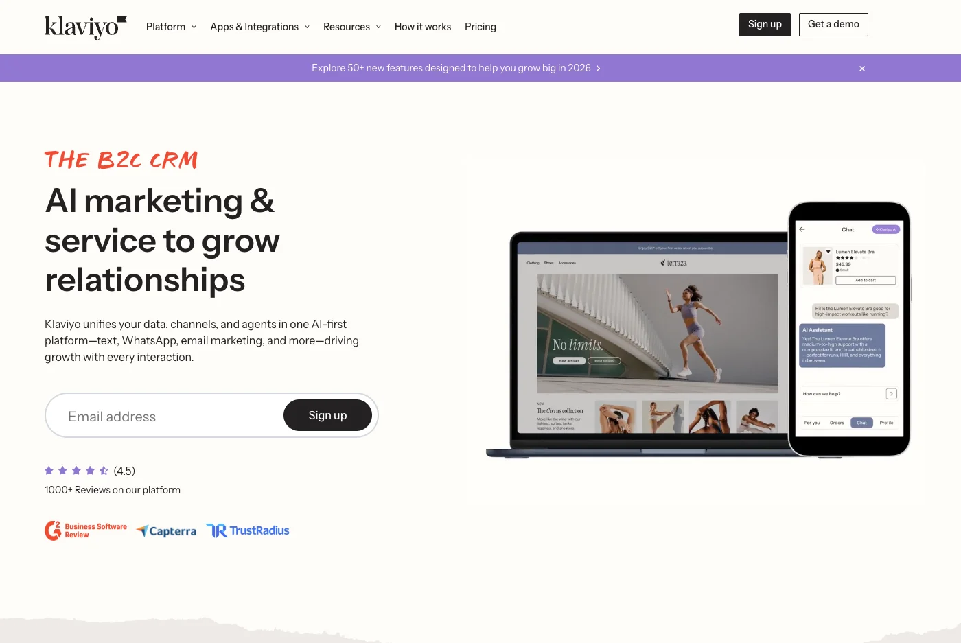 AI-powered ecommerce email and SMS platform with predictive analytics and 350+ integrations.