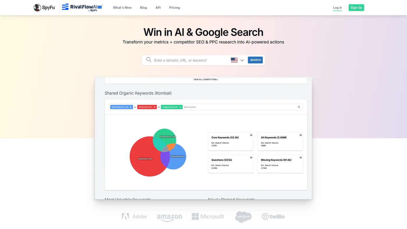SpyFu is a competitor research tool that reveals competitors' SEO keywords, PPC ads, and marketing strategies for Google Ads and SEO optimization.