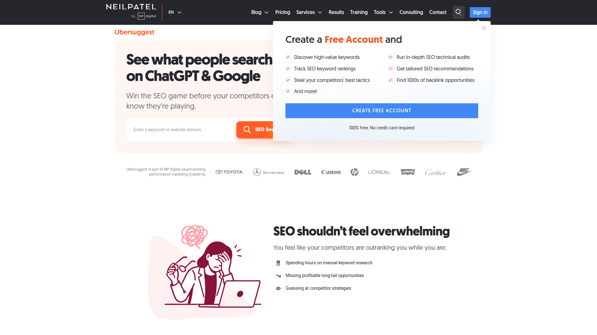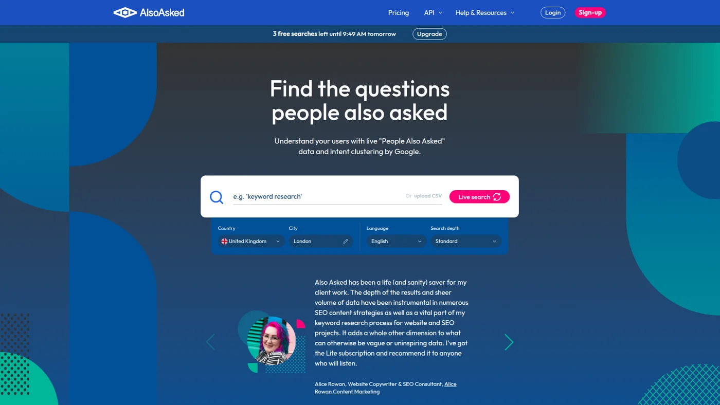 The main limitation of free tools is depth and scale. Free versions typically restrict the number of searches per day, pages you can crawl, or keywords you can track. Competitor research is also limited since most free tiers only let you analyze your own sites. If you need to reverse-engineer a competitor's entire keyword strategy or monitor hundreds of rankings daily, you will eventually need a paid tool.