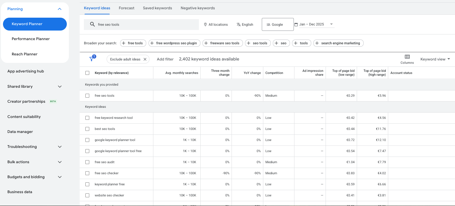 That said, for most small businesses, freelancers, and bloggers, a smart combination of free tools covers 80% of what you need. Google Search Console plus Google Analytics gives you performance data. A free site audit tool like Ahrefs Webmaster Tools or Seobility catches technical issues. And Google Keyword Planner or Ubersuggest handles basic keyword research.
