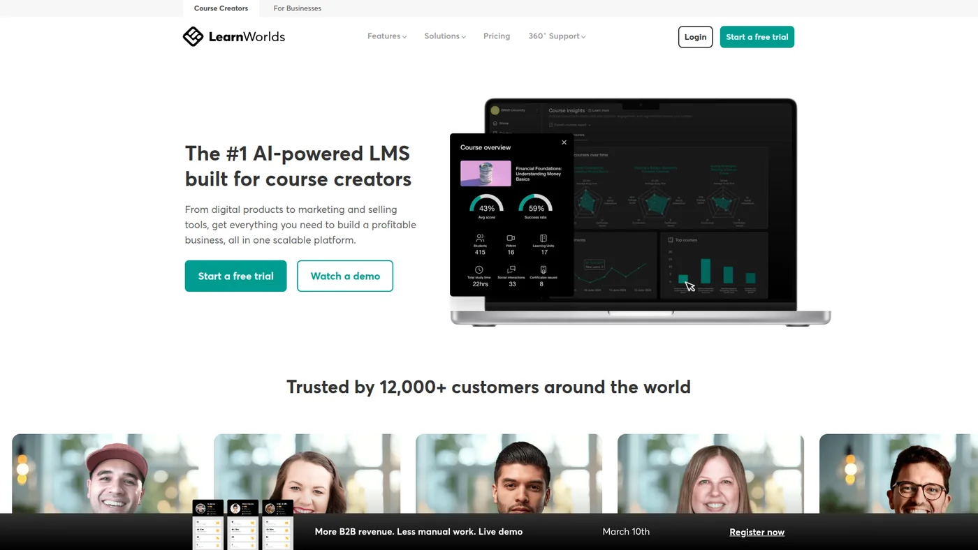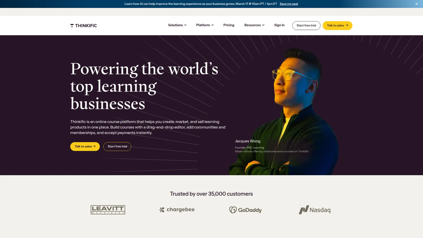 All-in-one platform for course creators, coaches, and experts to build, market, and sell knowledge products