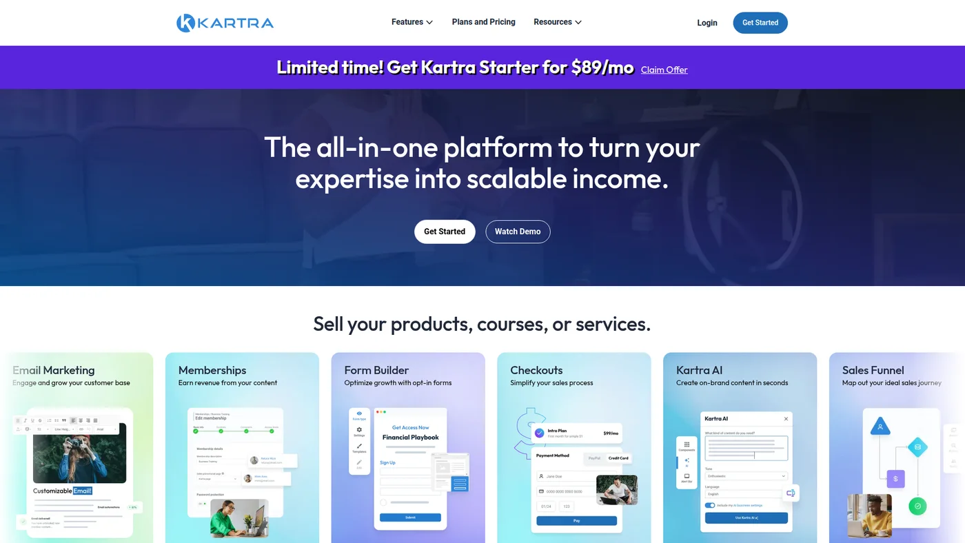 - Everything you need in one platform (courses, email, pages, checkout)