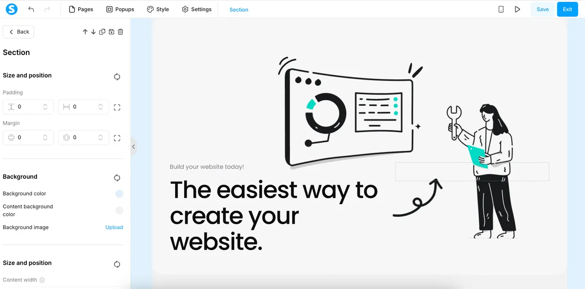 The editor is straightforward. It does not try to compete with dedicated website builders, but for a landing page, portfolio, or simple business site, it handles the job well.