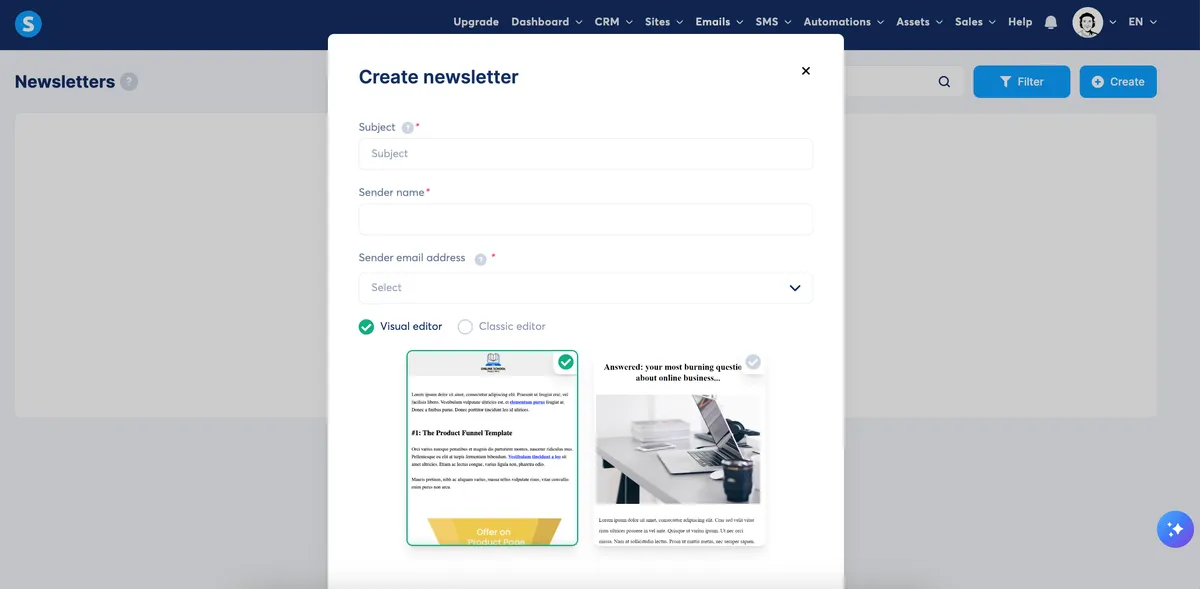 The CRM lets you filter contacts, add tags, manage subscriptions, and segment your audience. You also get newsletter campaigns and email sequences. For a tattoo parlor building their client list or an accounting firm nurturing leads, 2,000 contacts with unlimited sends is plenty to start.