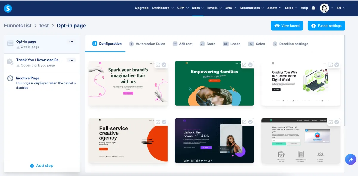 What surprised me is how much functionality is packed into each funnel. You get automation rules, A/B testing, stats tracking, lead management, and deadline settings, all on the free plan. This is the same funnel builder paid users get, just limited to 3 funnels.