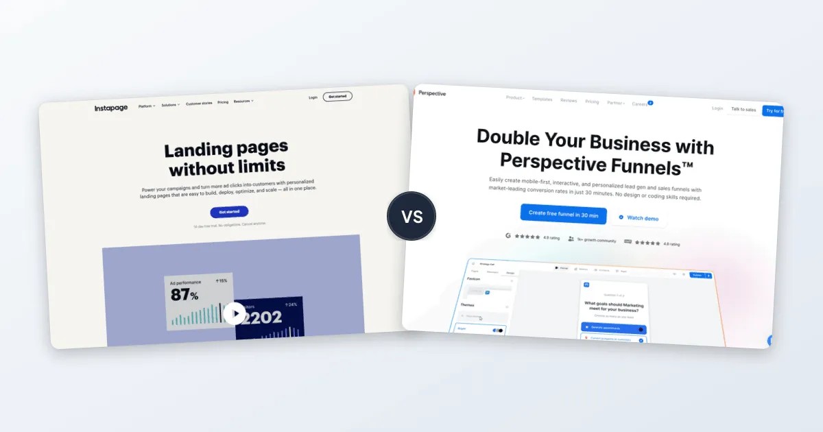Instapage is a well-established landing page builder focused on A/B testing and collaboration for agencies and enterprises. Perspective Funnels is a newer mobile-first funnel builder with AI-powered features and interactive elements designed for modern marketers.