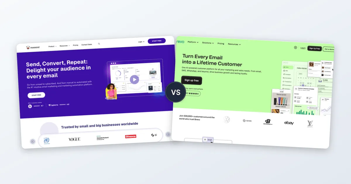 Moosend and Brevo are both popular email marketing platforms that start at the same price point. Moosend focuses on delivering powerful automation and landing pages at budget-friendly rates, while Brevo offers a broader all-in-one solution with SMS, WhatsApp, and advanced AI features.
