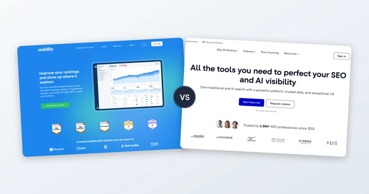 The SEO platform you use shapes how you discover keywords, analyze competitors, and track your progress in search results. Seobility and SE Ranking are both comprehensive SEO platforms that help businesses improve their search rankings. While Seobility focuses on user-friendly tools at affordable prices, SE Ranking offers advanced features with AI-powered insights and extensive data coverage. For a detailed cost comparison, check my Seobility Pricing and SE Ranking Pricing breakdowns.