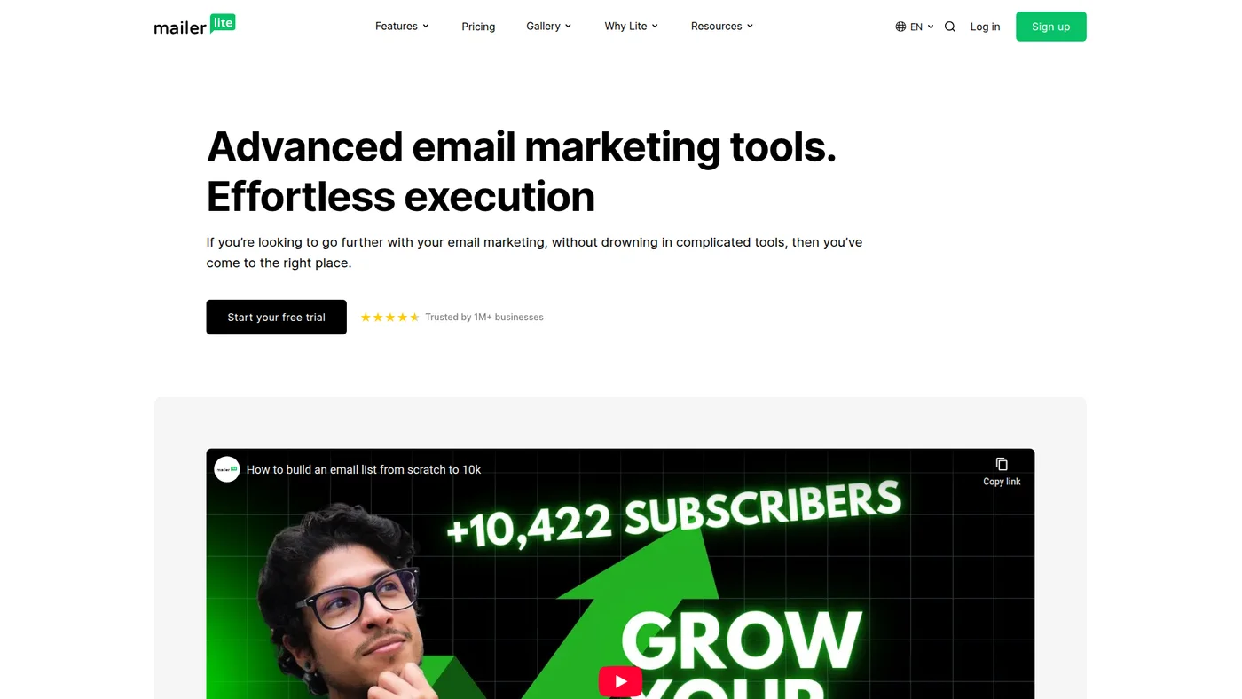 Start with their generous free plan and see why over 1 million businesses trust MailerLite